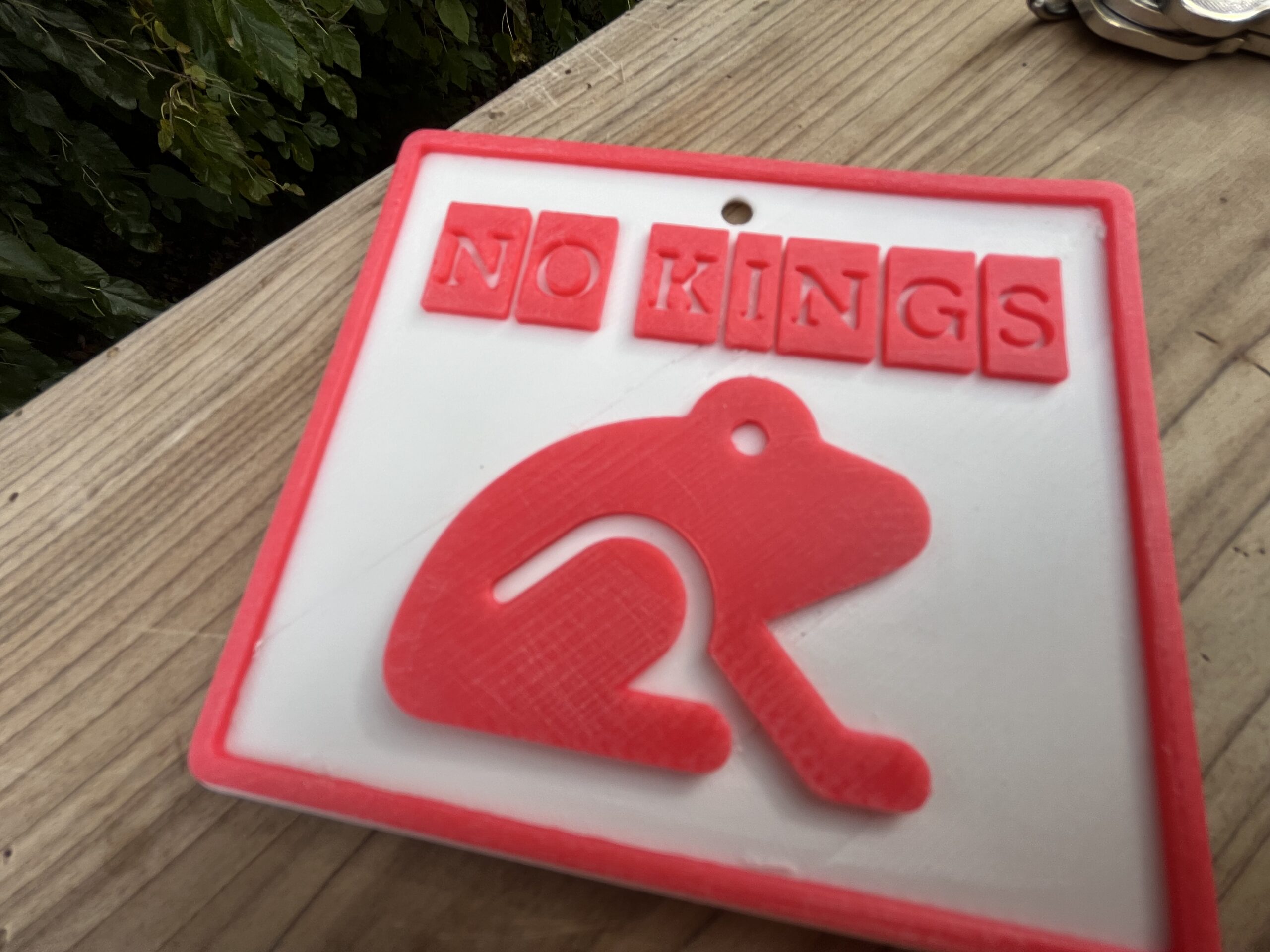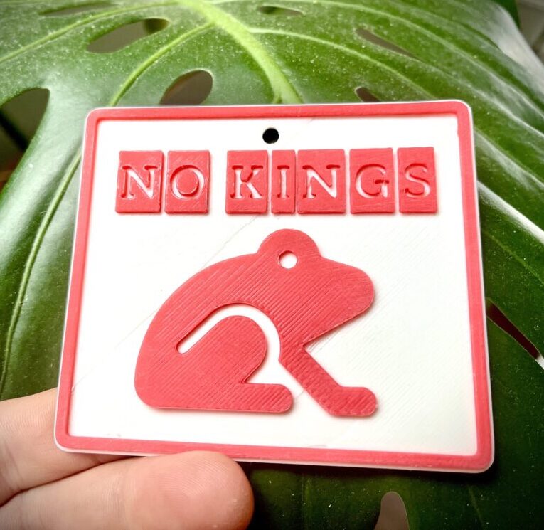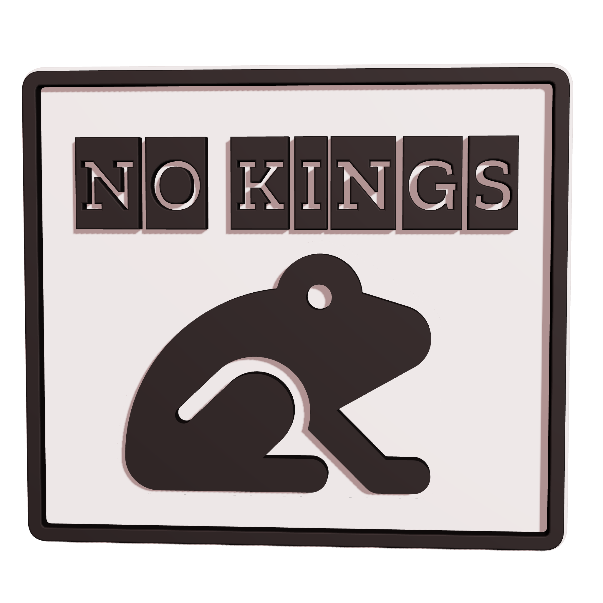 No Kings fits the bill and looks like a frog ready to hop over totalitarianism. It’s more than a sign to be hung… it’s a route to political change?!
